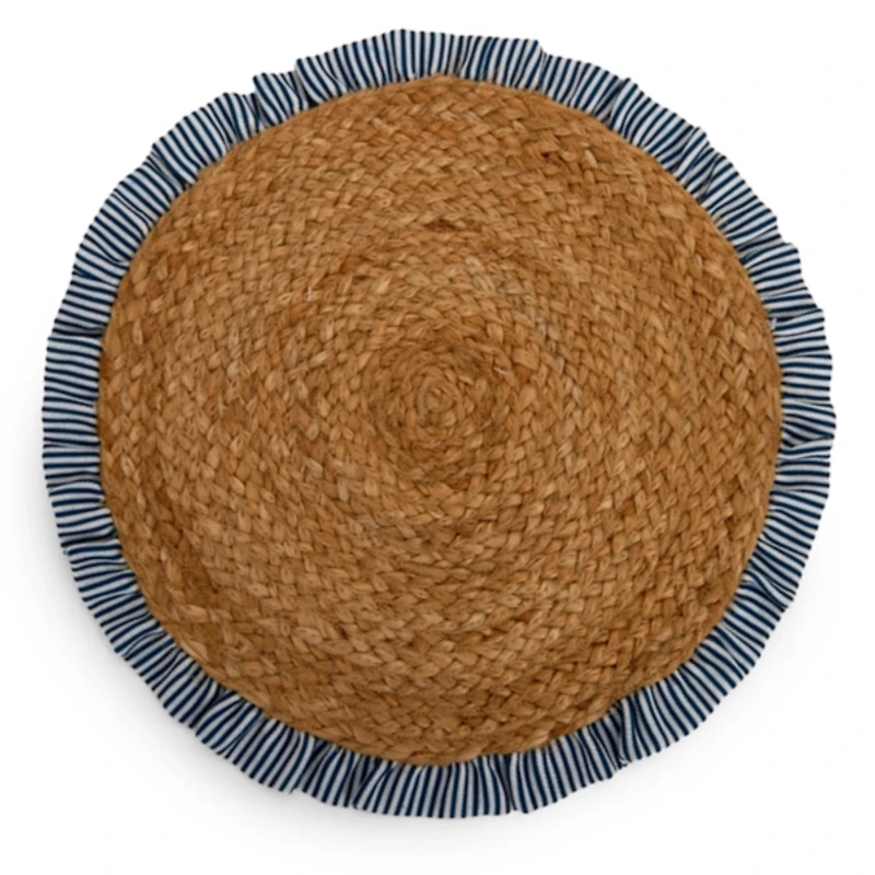 Navy Stripe Ruffle Trim Jute Placemat