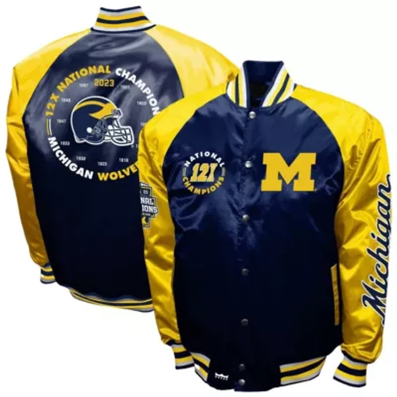 NCAA Franchise Club Michigan Wolverines Satin Full-Snap Jacket