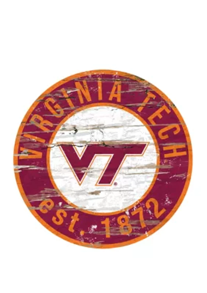 NCAA Virginia Tech Hokies University Distressed Round Sign