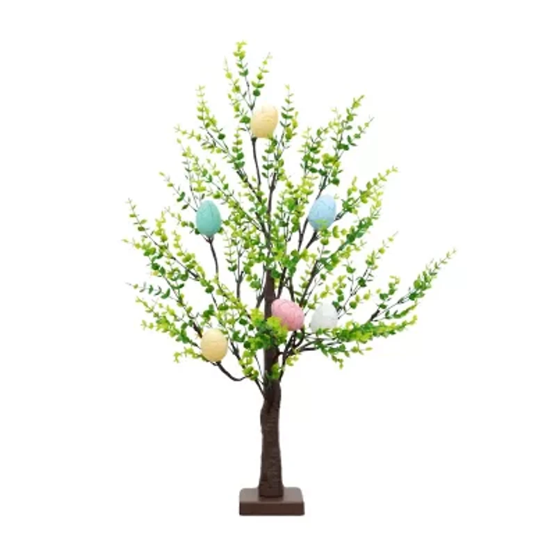 Bring the freshness of spring indoors with this 2-ft pre-lit artificial Easter twig tree, adorned with lush green foliage throughout. Accented with colorful egg-shaped LED ornaments, it captures the playful charm of a blooming garden. Each pastel crackle-finish egg adds texture and whimsy, while the 6 warm white LED lights create a warm, inviting glow. Inspired by nature, the brown twig branches, trunk and vibrant greenery make it perfect for styling in entryways, kid's rooms, or classrooms. Simply plug it in, let it sparkle, and enjoy a touch of spring magic that lasts well beyond Easter. Create special memories with the ones you love today.