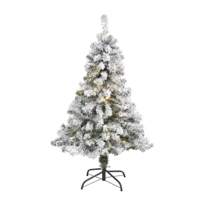 Nearly Natural 4 Foot Rock Springs Flocked Spruce With 100 Clear Led Lights Pre-Lit Christmas Tree