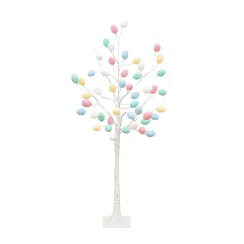 Easter decorating is made easy with this 4-ft pre-lit Easter artificial twig tree with egg-shaped ornaments and LED lights. Inspired by woodsy, birch trees, the egg crackle finish in soft pastel colors add a playful, whimsical touch. Style it in a kid's room, living room, or entryway and let it bring a little happiness to you every day. Great for Easter brunch and beyond, shape the branches for a custom look.