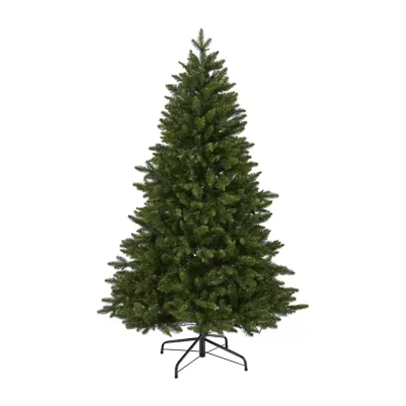 Create a traditional Christmas scene in your home or office with the help of this New Hampshire Fir Artificial Christmas Tree! Completely maintenance-free, this realistic looking fake Christmas tree boasts a rich collection of evergreen foliage, including 652 bendable branches perfect for accenting with your own personalized ornaments and holiday accents. Arriving pre-strung with 150 LED lights to eliminate tangles and carefully stabilized on a metal stand, this 5' tall artificial Christmas tree will not only make decorating a breeze but ensure your home is always seasonally attired for years to come.
