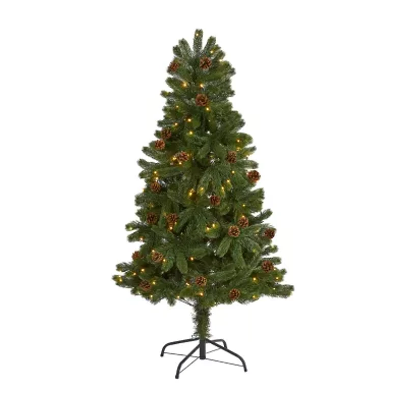 Nearly Natural 5ft. Rocky Mountain Spruce Artificial Christmas Tree With Pinecones And 100 Clear Led Lights 5 Foot Pre-Lit Spruce Christmas Tree