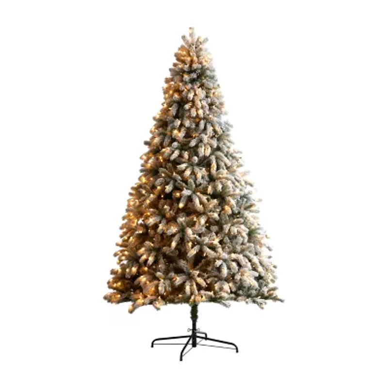 Nearly Natural Flocked Faux 9 Foot Pre-Lit Spruce Christmas Tree