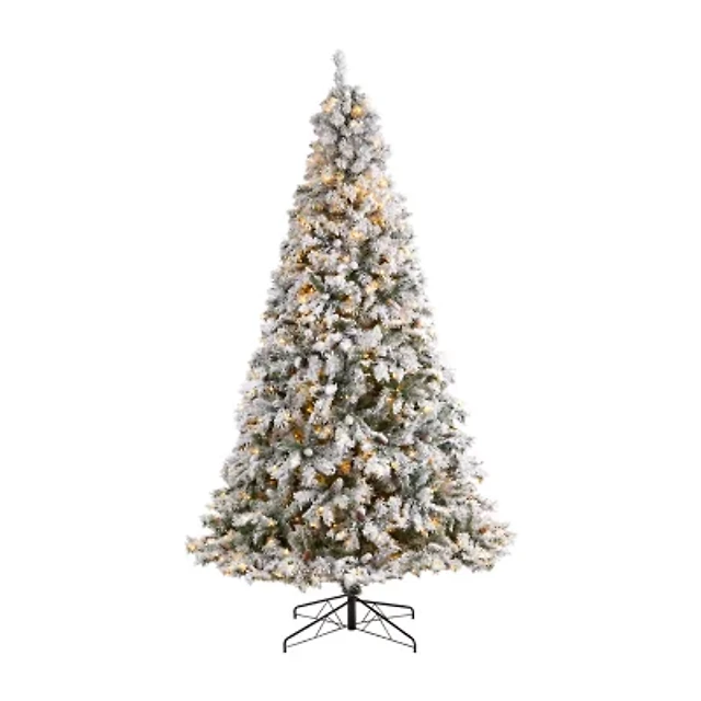 Nearly Natural Flocked Faux 10 Foot Pre-Lit Pine Christmas Tree