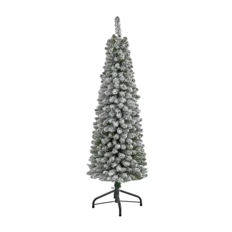 Nearly Natural Flocked Pencil 5 Foot Christmas Tree