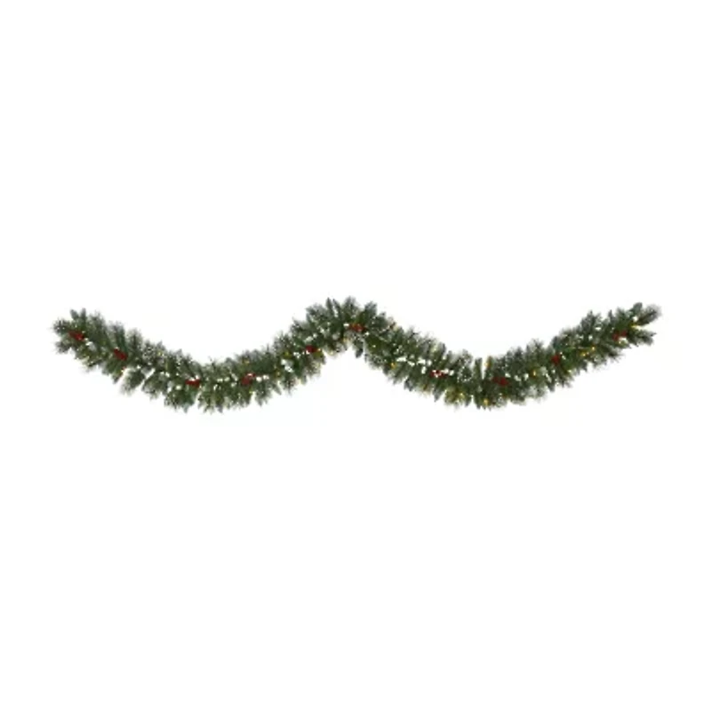 Complete your holiday decor scheme with this artificial winter garland, intricately designed from realistic looking mountain pine foliage in a palette of seasonal evergreens, accented with faux holly berries that look incredibly lifelike, and finished with a light frosting of fake snow. Great for showcasing over a mantle, bare counter, or stair banister, this impressive 9' long artificial garland will undoubtedly complete a traditional holiday setting for years to come.
