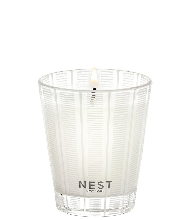 Create a serene spa-like experience with this Classic Candle featuring an herbaceous blend of rosemary, lavender, and sage enhanced with cedar leaves. NEST has a new look! The fragrances you know and love are now housed in new designs, but rest-assured, the formulas and scent experiences remain exactly the same. Weight: 8.1 oz | 230 g Dimensions: 3.5" D x 4.125" H This exquisitely fragranced candle is meticulously crafted with a proprietary premium wax formulated so the candle burns cleanly and evenly and infuses a room with exceptional scent. Follow the tips below to help ensure optimal results when burning your NEST NEW YORK candles: Trim the wick to ¼ inch each time before burning Center and straighten the wick after blowing out your candle Burn candles in a well-ventilated room Keep the wax pool clear of wick trimmings, matches and debris Keep burning candles away from drafts, vents, fans or air currents Before re-lighting a candle, let the candle cool completely Burn regular sized candles for 3–4 hours at a time Burn candles in an ambient of 65–75 degrees °F When burning multiple candles, place at least 8 inches apart If a candle is burning unevenly and the wick is centered, it’s in a draft Never leave a burning candle unattended or within reach of children and pets Burn Time: Up to 60 hours burn time