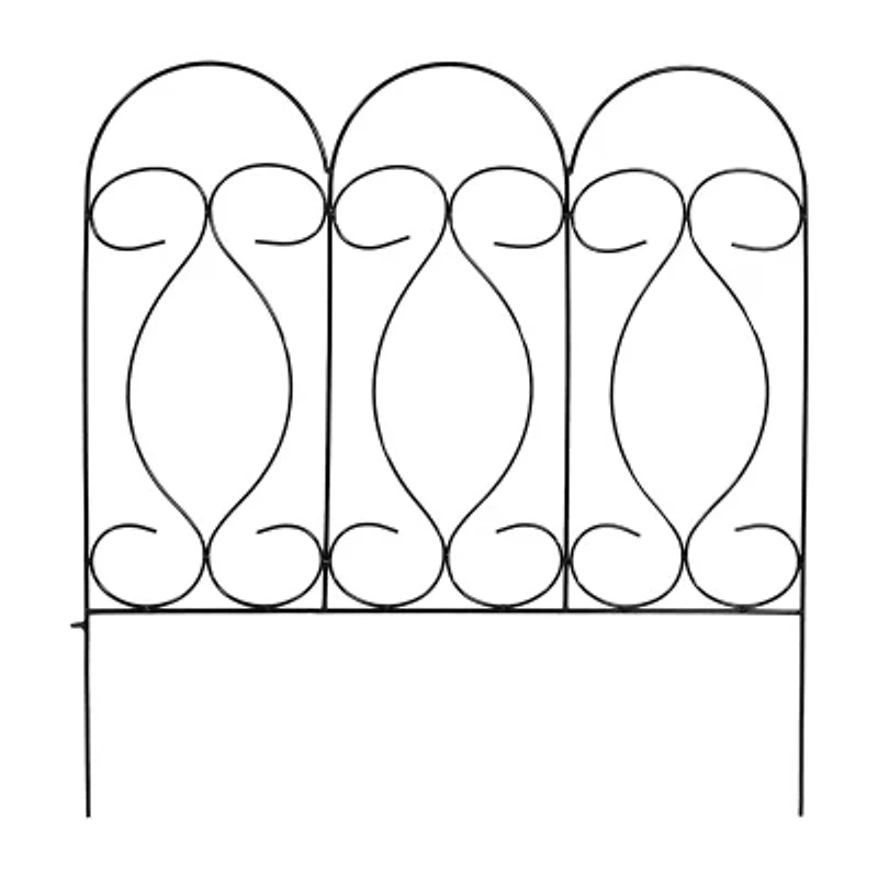 Create an elegant border around a flower bed, pathway, or yard with these decorative garden fencing panels. These traditional-styled fence borders are the perfect touch for any outdoor space with each panel featuring three rounded arches and longer posts that stick steadily into the ground for strength and durability against the outdoor elements. Made from durable, rust-resistant steel, these fencing panels are designed with long-lasting strength and beauty. Each section is connected with a hook and loop on each side of the panel that are not rust-resistant and require a little more care and maintenance for longevity due to the material of the hardware. This connection creates a complete border to enhance and protect a beautiful walkway, garden, or planting area. These garden border fences are not only great for adding a stylish touch to a garden but are also perfect for protecting flowers from unwanted disturbance from pets, wild animals, and people.