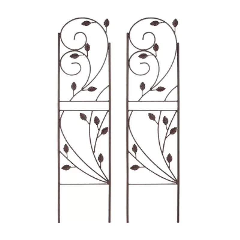 Your climbing plants and vegetables will enjoy and benefit greatly from this metal garden trellis. This garden trellis will not only aid your plants' vertical growth but will also create a stunning display up against any garden wall, patio wall, or other outdoor wall in need of a beautiful and natural focal point. The beautiful, whimsical design inside this delicate frame adds beauty and modern chic elegance to your space. The design features beautiful vine design throughout. Made of sturdy steel wire and powder-coated for weather-resistance, this trellis is perfect for outdoor use, ensuring long-lasting use and strength. This metal garden trellis will also help prevent breakage and vegetables from falling off too early. Help your pants climb and create a beautiful, accented feature in your home's outdoor d�cor with this beautiful, vine-inspired garden plant trellis. Standing at 26 inches tall and in a set of 2, this trellis provides plenty of room to allow your plants the best growth options.