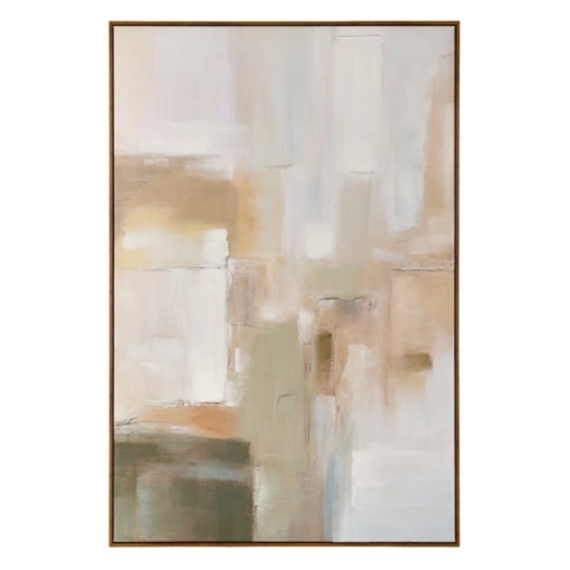 Revitalize your art collection with this Neutral Green Brushstrokes Framed Canvas Art Print. Its textured style and soft, muted hues turn any blank wall into a beautiful display! Overall dimensions Width: 39.37 in. Depth: 1.45 in. Height: 59 in. Distinctively printed on stretched canvas Brown frame around wrapped canvas Abstract subject Hues of green, tan, white, and gray Print with painted embellishments Weight: 6.39 lbs. Hangs from back-mounted hardware Care: Dust with a soft, dry cloth. Contact your local Kirkland's store for availability. Quantities and selection may vary by location. WARNING: Cancer and Reproductive Harm - For more information go to www.P65Warnings.ca.gov .