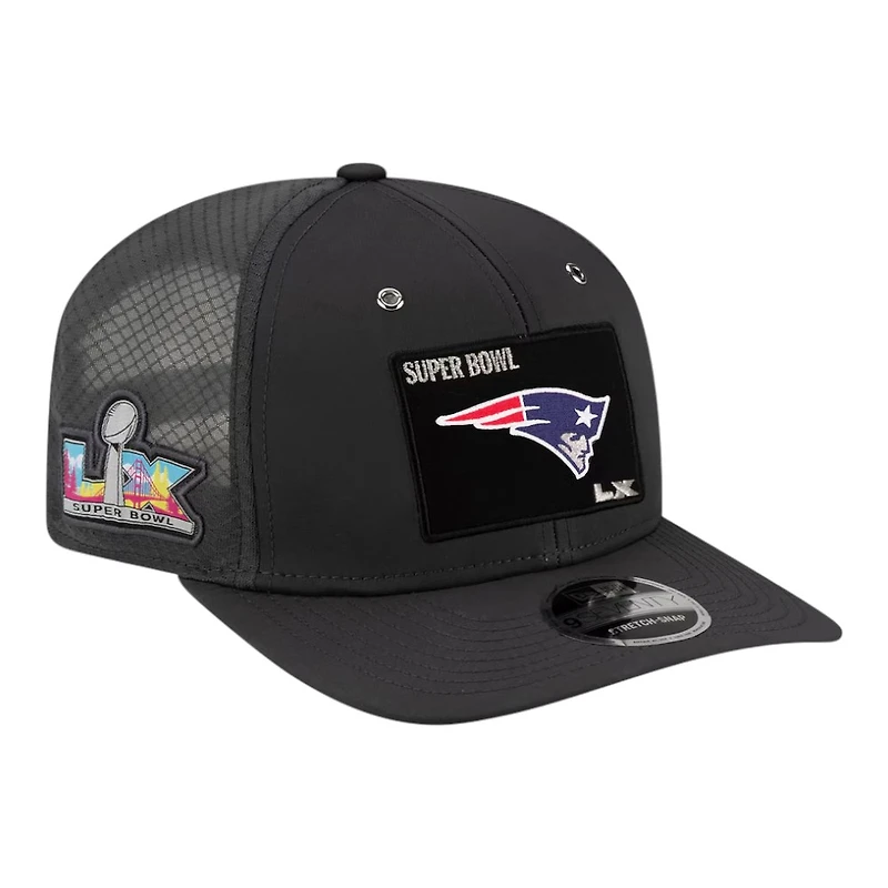 Get ready for the big game in this New England Patriots Charcoal Super Bowl LX Opening Night New Era 9SEVENTY Adjustable Hat.