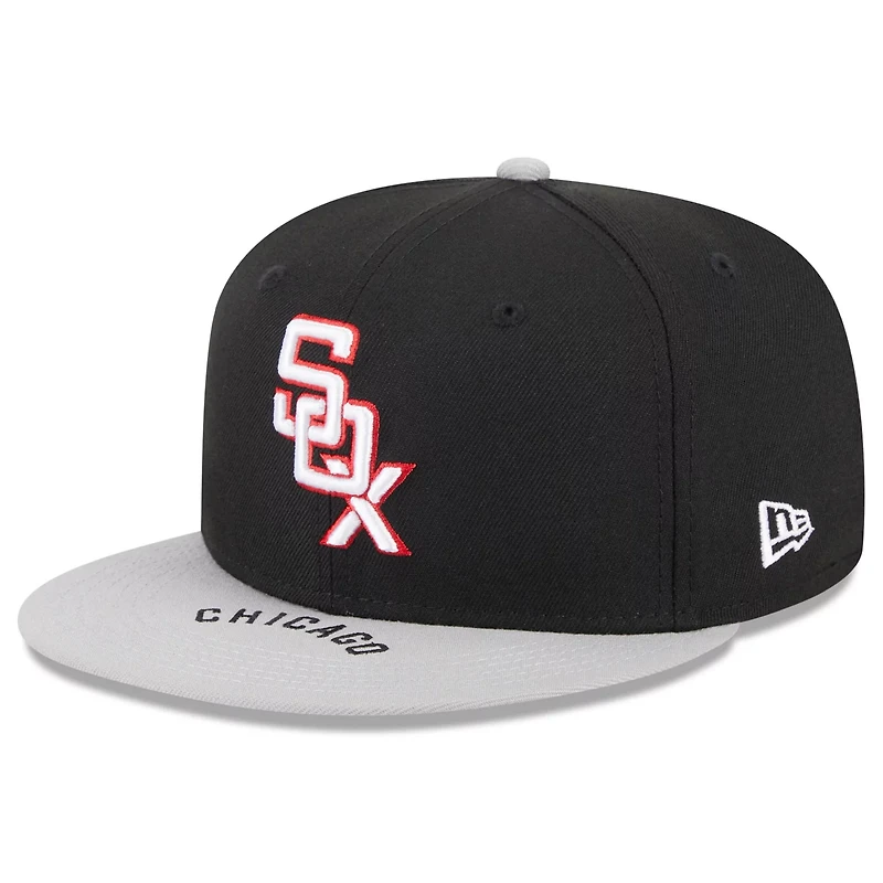Pay a nod to your MLB favorites by finishing your look off with this bold Chicago White Sox 9FIFTY snapback hat from New Era It features raised Chicago White Sox embroidery on the front panels and a fabric applique on the right side crown that show your unyielding team spirit The two-toned crown and bill also give this hat the perfect finish while the snap closure makes it easy to secure the perfect fit