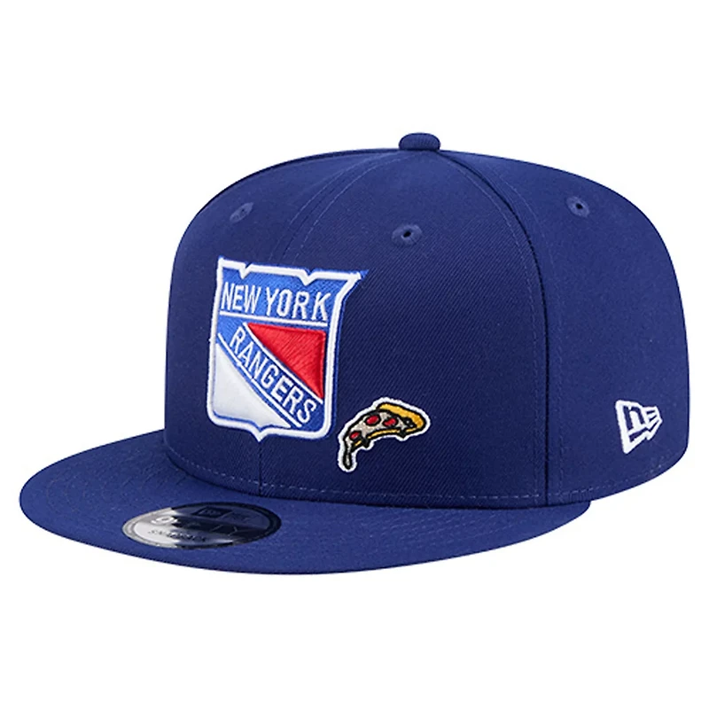 Showcase your die-hard New York Rangers loyalty with this 9FIFTY Snapback Hat from New EraShowcasing the iconic New York Rangers logo with a fun pizza graphic this snapback is a statement piece that effortlessly blends team pride with modern style The structured fit and flat bill provide a classic look making it the perfect accessory for any die-hard New York Rangers fan looking to stand out from the crowd