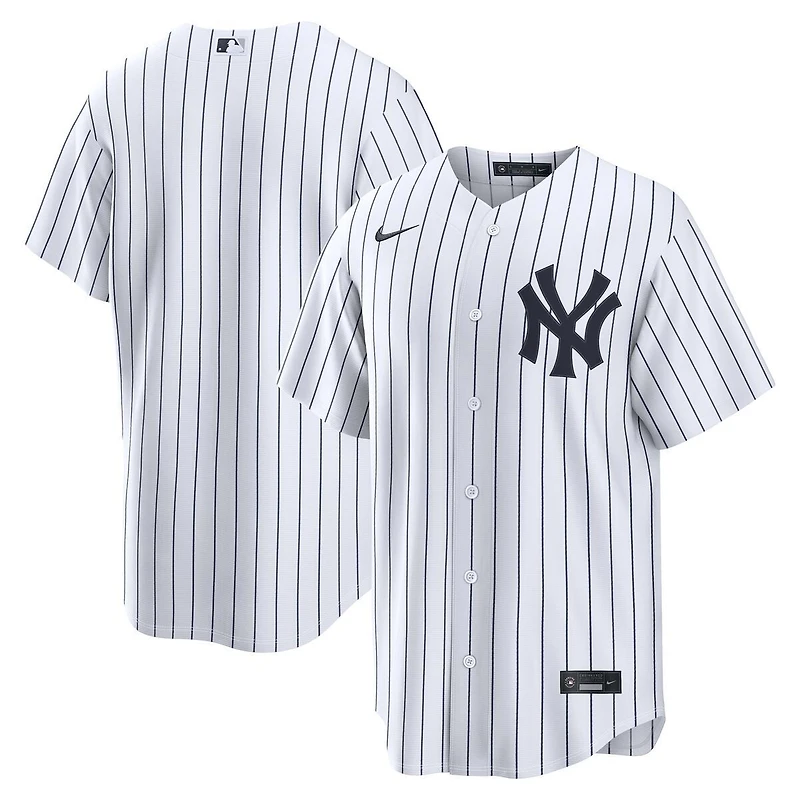 This New York Yankees Blank White Pinstripe Home Nike Replica Jersey is an officially licensed MLB jersey made by Nike. It's a jersey with a button up front. This jersey does not have stitched numbers or letters.Nike MLB Replica Jersey DetailsDesigned for fans who want the look without paying top dollarFull-button frontRounded droptail hemMaterial is 100% lightweight polyester Heat-sealed name and number (not stitched)Looser, more relaxed fit — meant for comfort