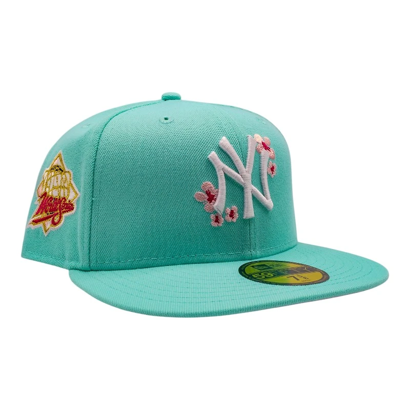 New York Yankees Mint Green Cherry Blossoms 1999 World Series Patch Pink UV Era 59Fifty Fitted Hat