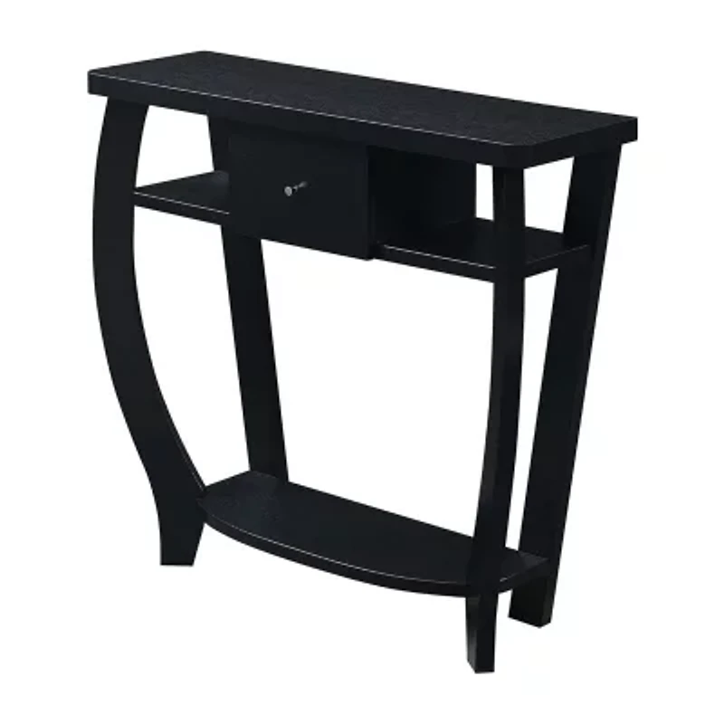 Update your space with the Newport 1 drawer Dorchester console table with shelf. The sleek sophisticated design is perfect for any room where you can display your collectibles or place your keys. The wavy silhouette gives this piece a gracious look while showcasing a lovely woodgrain finish. Featuring a drawer for concealed storage you can hide away unsightly accessories. Engineered for durability the Dorchester console will become a staple in your home.