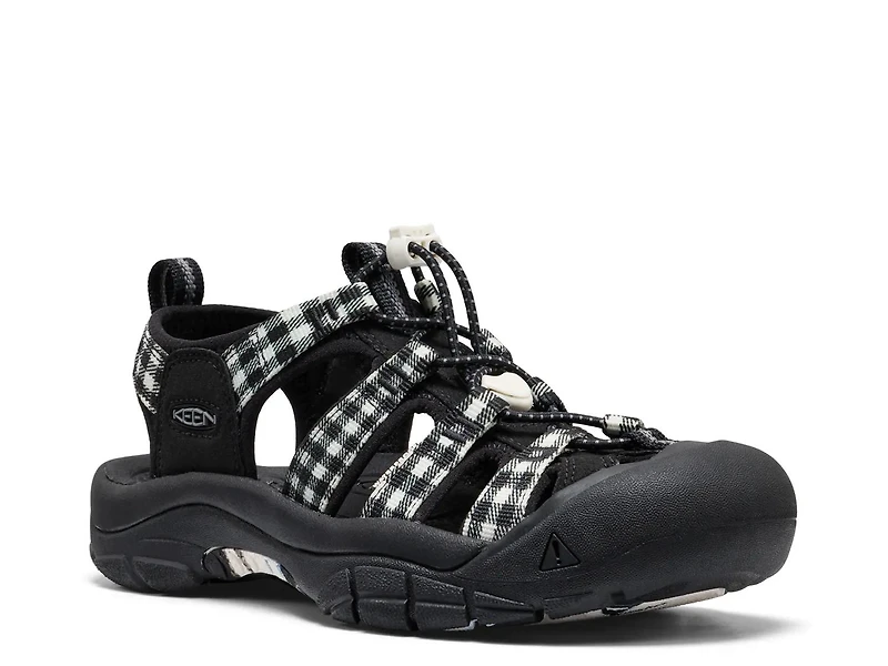 Tread across varied terrains in the Newport Retro fisherman sandal from Keen. Built with washable polyester webbing upper and quick‑cinch bungee lacing, it offers a secure fit and is easy to slip on and off. A shock‑absorbing foam insole with arch support keeps you cozy all day, while the foam midsole offers lightweight cushioning support. The higher‑traction rubber outsole with multi‑directional lugs and razor siping delivers reliable grip on wet surfaces. Eco Anti-Odor provides pesticide-free odor control. Quick‑dry lining and a roomy Original Fit make this sandal ready for water, trail, and everything in between.