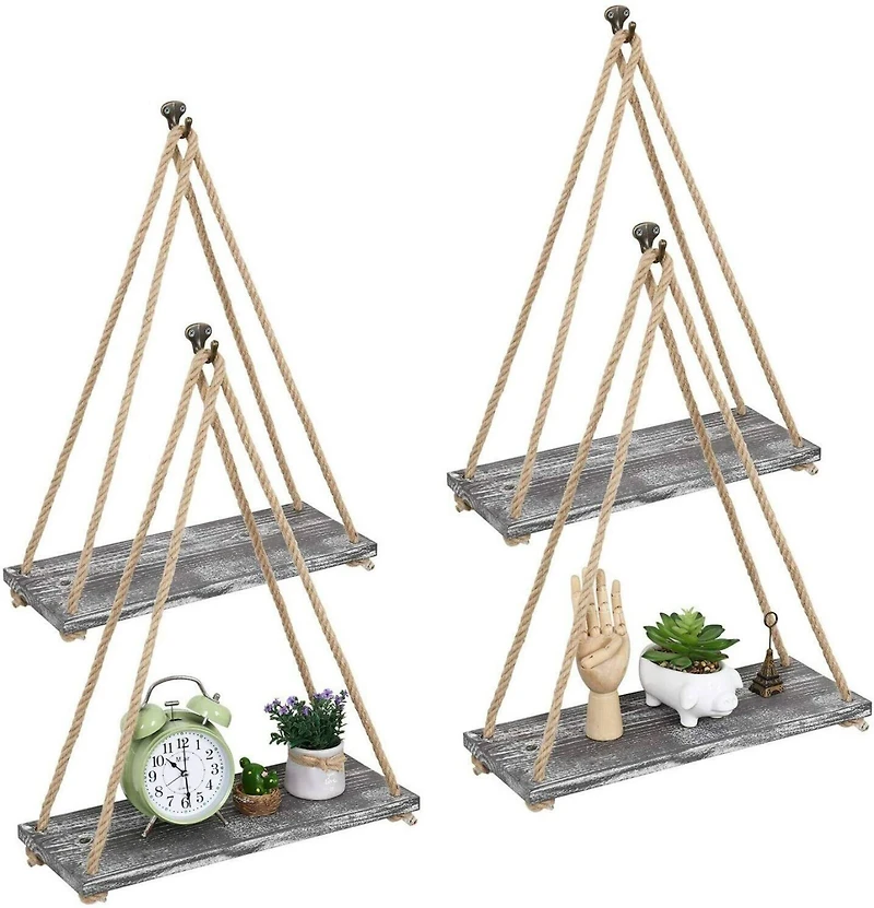 These hanging shelves are both functional and attractive. They match almost every décor style and are great for the home, office and more! Super versatile, they are good for displaying photos, memorabilia, collections, books, plants and more.
