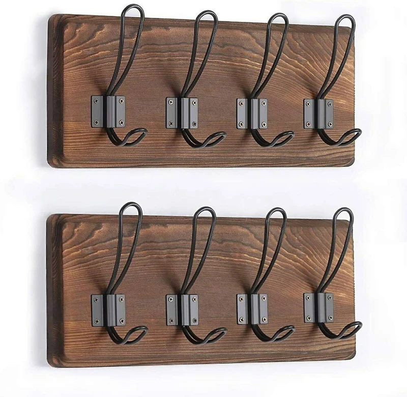 This wall-mounted coat rack create an extra space to organize your clothes or others, save space and cut clutter in any room in your home. It is strong, solid and environmentally friendly. The package contains all the components required for installation. Setup can be done in the blink of an eye. This rack is perfectly for your entryway, kitchen, bedroom or bathroom, and more. Details: Brown 0.79" x 5.96" x 14.96" 3.3 lb. Set of 2 racks 4-hook style, each rack 10 lb. weight capacity, each rack Wall-mounted design Simple installation required Metal and wood materials