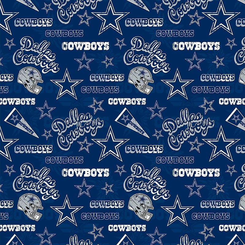Make a throw pillow cover, book cover, tote bag and more with this NFL Dallas Cowboys cotton fabric. Featuring their logo design with the classic team font, this pattern will be a hit with fans! Pattern: Dallas Cowboys logo Contents: 100% cotton Width: 58" (147.3 cm) NFL Dallas Cowboys officially licensed Maximum cut length: 10 yd. (9.1 m)Note: While we will do our best to fulfill your order in one continuous cut, you may receive your order in multiple cuts