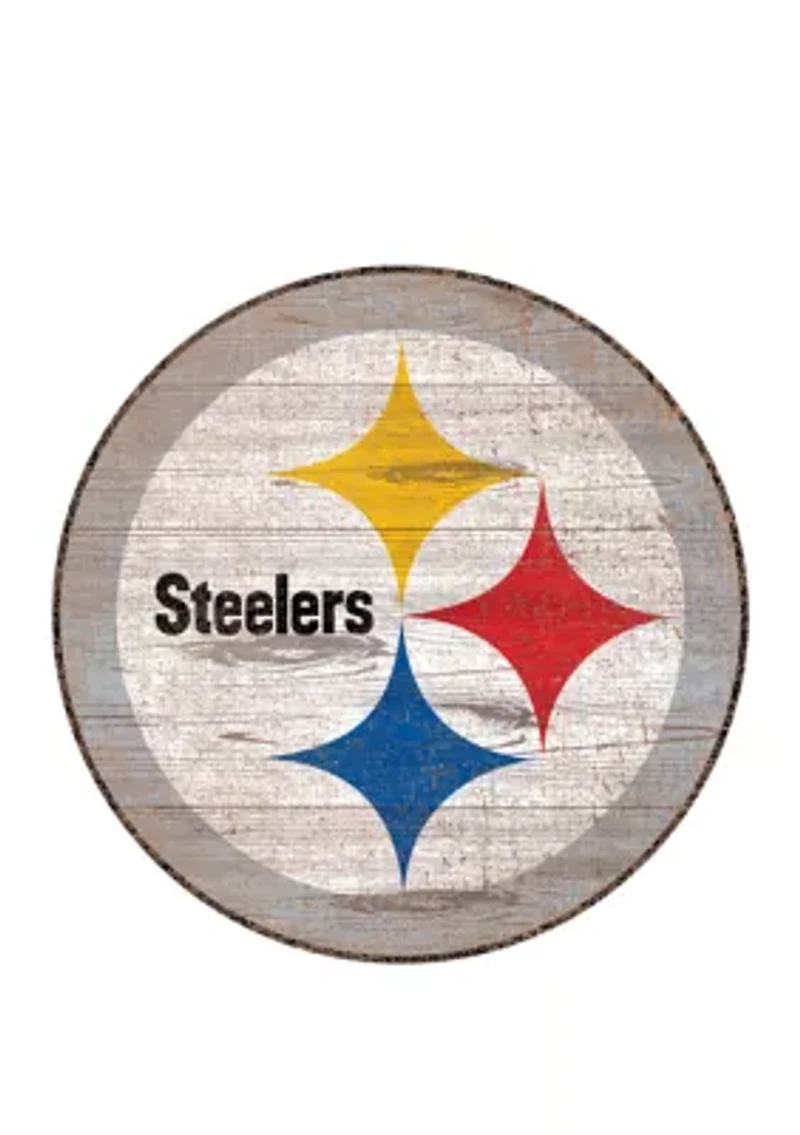 This NFL Pittsburgh Steelers distressed logo cutout sign by Fan Creations features a vintage theme look that is perfect for any part of the house you want to show team loyalty. Includes a hanging bracket Domestic Product Specifications 24 in L x 24 in W x 6 in H Material & Care MDF Wipe clean