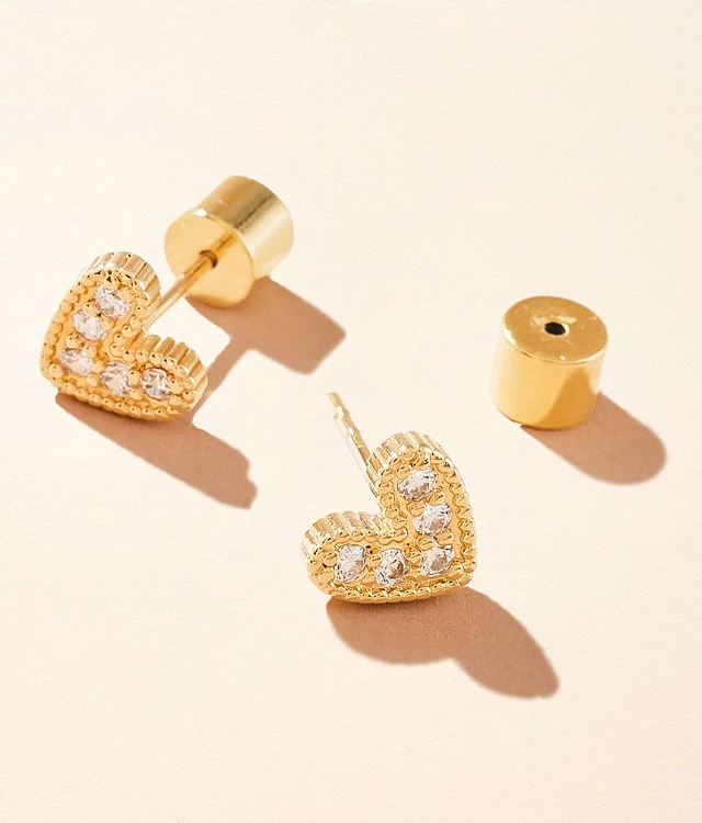 Waterproof Gold Plated Stainless Steel Diamante Mini Pavé Heart Earrings