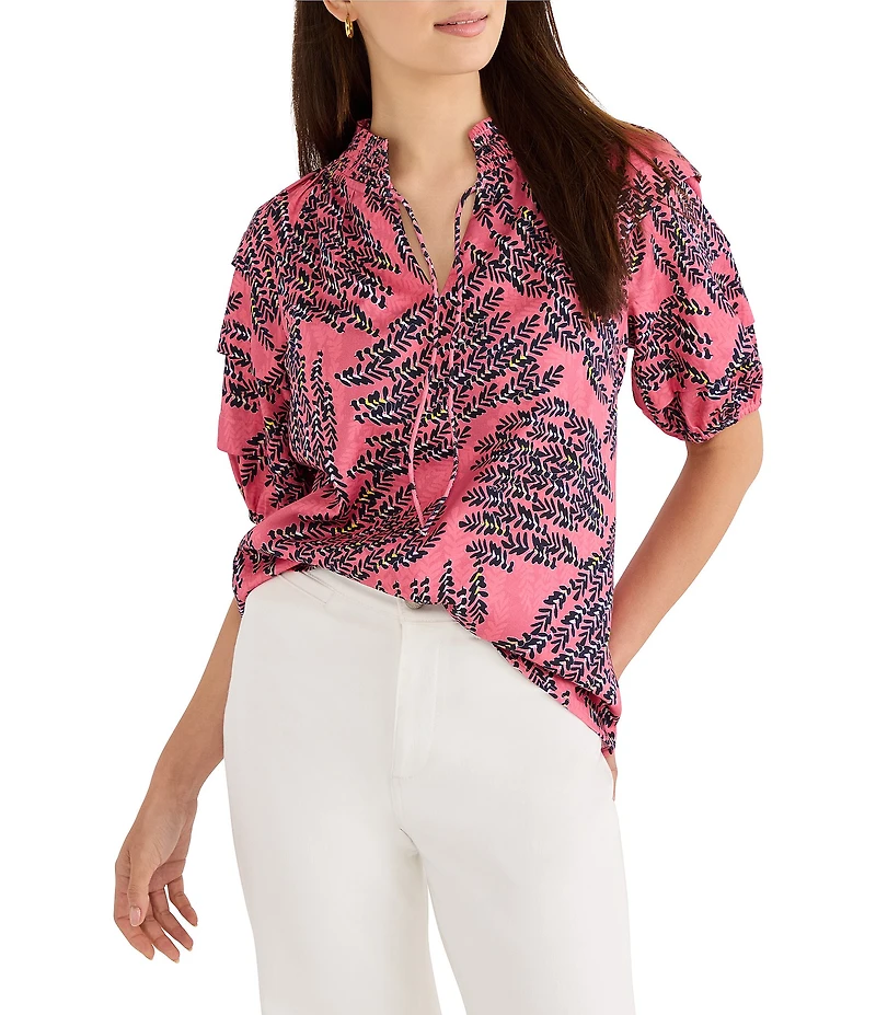 NIC + ZOE Blush Of Spring V-Neck Elbow Sleeve Peasant Top in Chattanooga, TN
