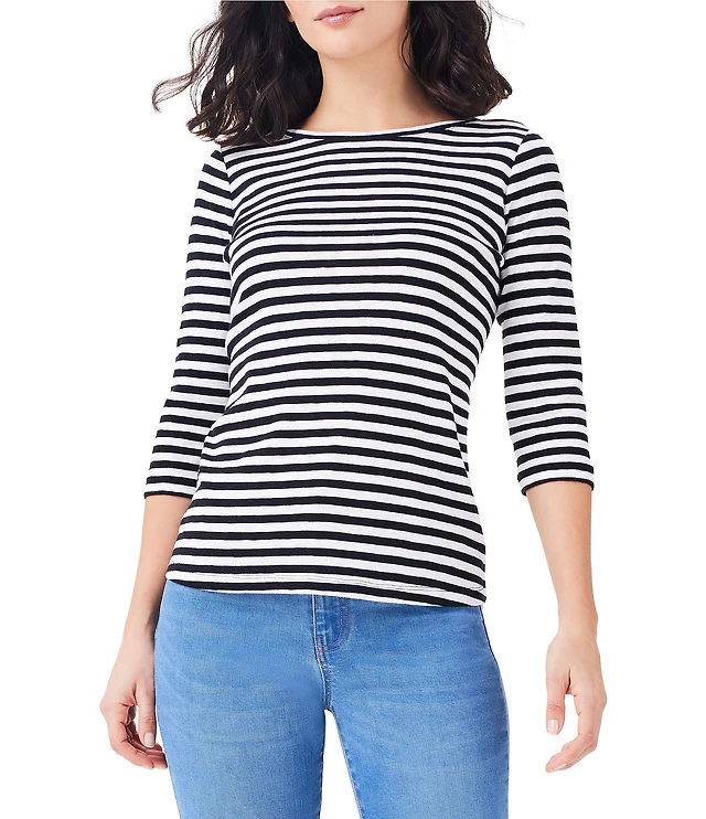 NIC + ZOE Stripe Knit Boat Neck 3/4 Sleeve Tee