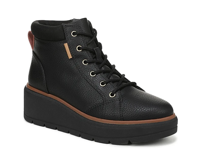 You're in for solid looks and reliable comfort when you opt the Nice Day Max Alpine wedge bootie from Dr. Scholl's. The water-resistant bootie, designed with Global Recycled Standard, contains recycled bottles in the upper and lining, making it a sustainable option. 15% BLOOM foam insole add to the eco-consciousness while offering impressive comfort. Also, its DEFENDER Repellant Systems protects from water, oil and other stains.