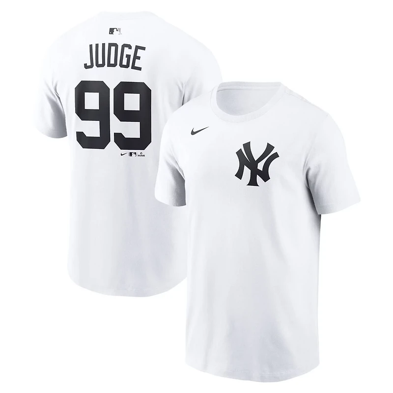 Show some love for your favorite New York Yankees player with this Aaron Judge Name Number T-Shirt from Nike The team wordmark on the front and jersey details across the back give it a classic look inspired by official uniforms Made with lightweight jersey fabric this Aaron Judge tee has a traditional fit for everyday wear