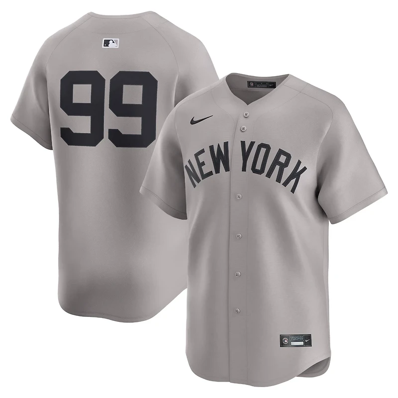 Give your New York Yankees look an upgrade with this Aaron Judge Road Limited Player Jersey by Nike Designed to mirror the on-field jersey its double-knit mesh fabric provides a breathable and comfortable feel The Vapor Premier chassis allows for a full range of motion and teams up with Dri-FIT ADV technology to keep you cool and dry whether you're in the stands or out on the town
