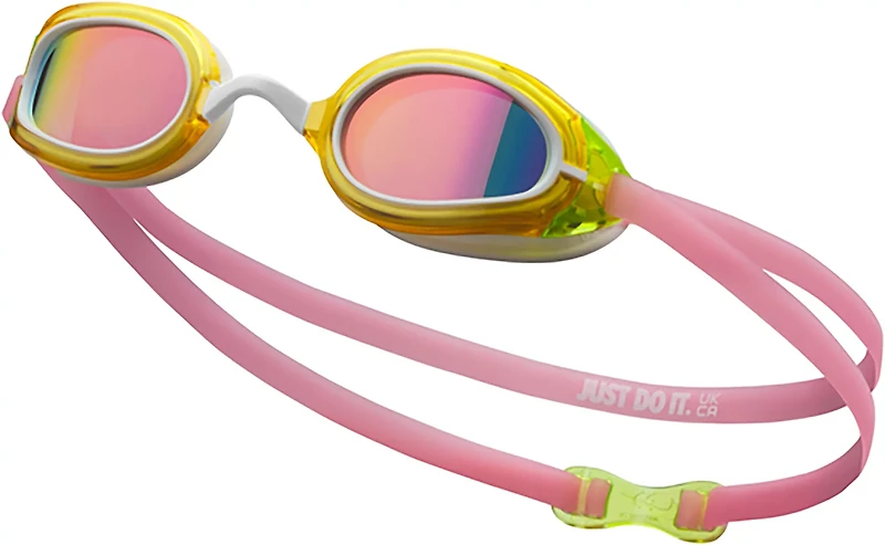 Take on the laps with confidence in the Nike Adults' Swim Legacy Mirror Swim Performance Goggles. The silicone, polycarbonate and thermoplastic polyurethane (TPU) material offers durability, and the Swift Track nose bridge system supply a custom fit. The silicone gaskets provide a soft, flexible feel, while the polarized lenses help eliminate glare on reflective surfaces.