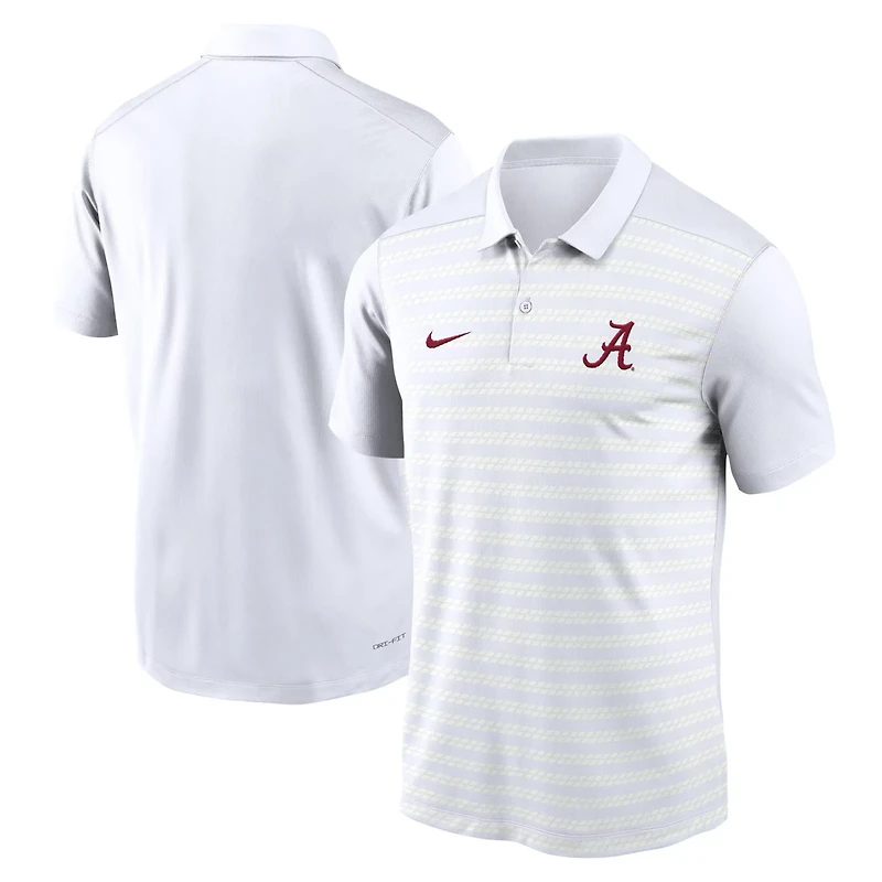 This Alabama Crimson Tide Early Season Coaches Sideline polo offers performance without sacrificing comfort Nike designed it with breathable sweat-wicking Dri-FIT technology and the team logo embroidered on a grid-inspired stripe pattern The two-button placket gives this Alabama Crimson Tide polo a modern look