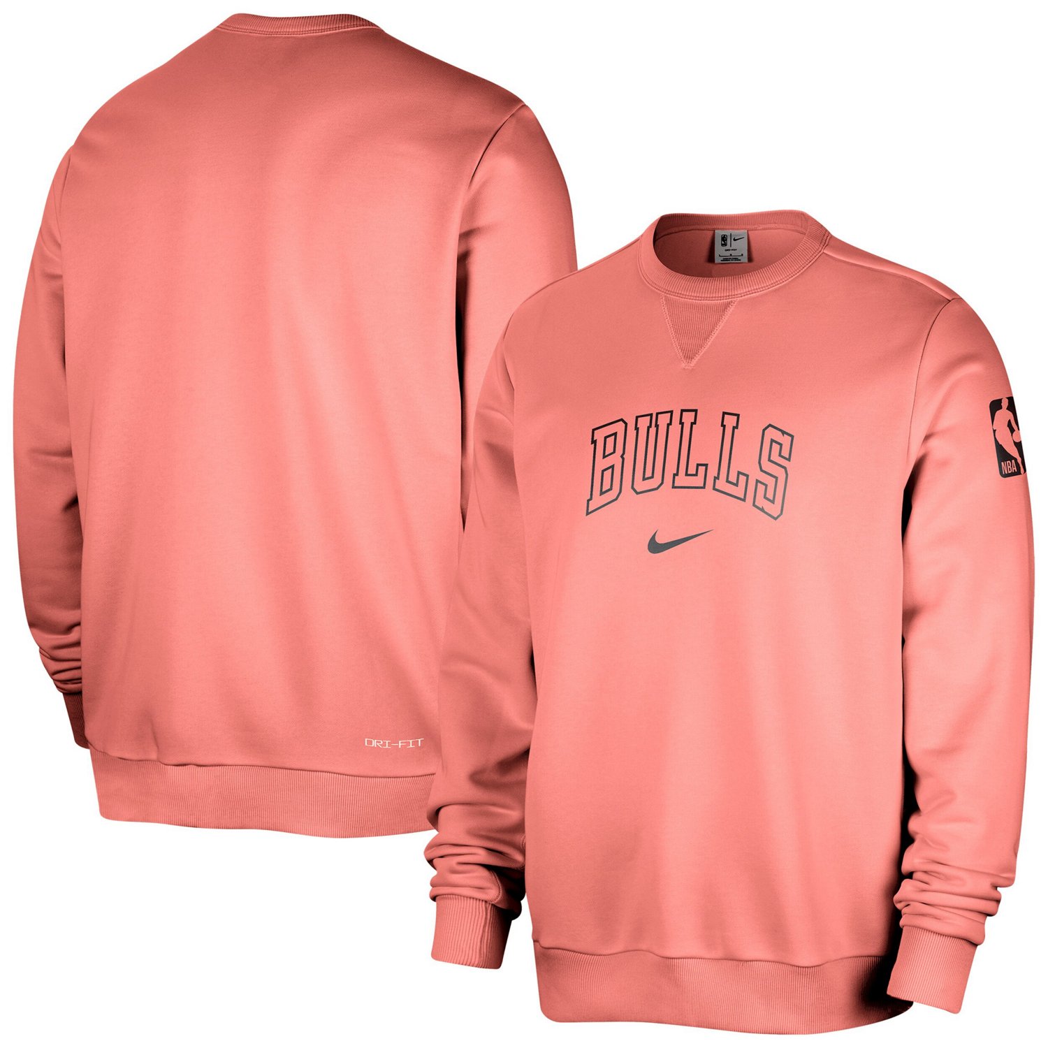 Elevate your Chicago Bulls game-day style when cooler temperatures arrive this Courtside Standard Issue Sweatshirt Part of the Nike Standard Issue Collection this extra layer combines a classic look and integrated Dri-FIT fabric technology to wick moisture away and keep you feeling fresh while you rep your favorites on gameday The distinct Chicago Bulls wordmark printed across the torso gives this top a street-ready vibe that makes it perfect for everyday wear
