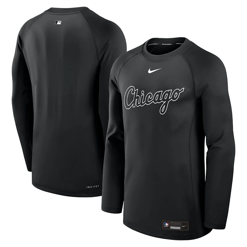Look ready to join the Chicago White Sox in the dugout with this Authentic Collection Game Time Raglan Performance Long Sleeve T-Shirt by Nike Mirroring apparel worn by the team its four-way stretch fabric and raglan sleeves provide a full range of motion for the most comfortable fit Sweat-wicking Dri-FIT technology keeps you dry all day while French terry lining adds breathable warmth to this Chicago White Sox shirt