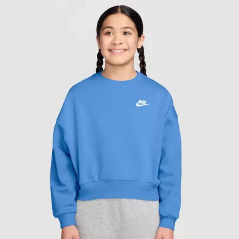 Nike Club Big Kid Girls Crew Neck Fleece Long Sleeve Sweatshirt