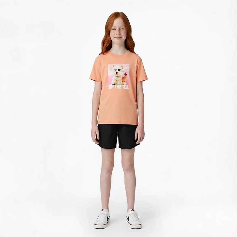 This Nike Girls' Sportswear Sip Photo T-shirt is a comfortable and stylish choice for daily wear. It is made of 100% cotton for a soft feel, and the T-shirt has a roomy and relaxed fit with room to move. The printed graphic on the chest helps bring out your style for all to see.