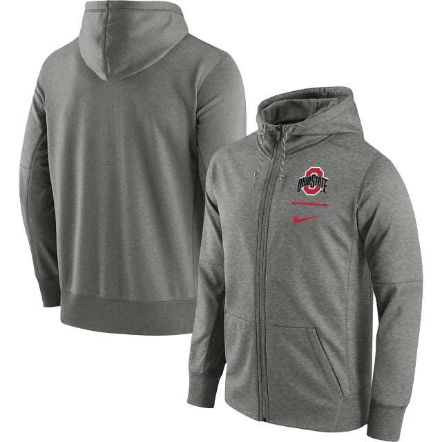 Nike Heathered Gray Ohio State Buckeyes Logo Stack Performance Full-Zip Hoodie