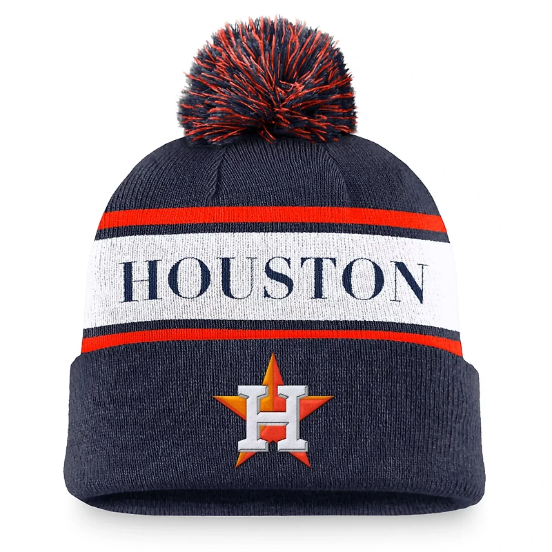 Nike Houston Astros Team Stripe Peak Cuffed Knit Hat with Pom