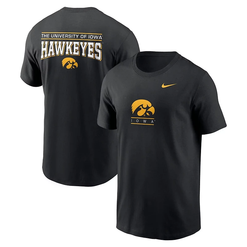 Enjoy a double dose of Iowa Hawkeyes spirit by stepping out with this 2-Hit T-Shirt from Nike It features a signature Iowa Hawkeyes graphic printed across the torso and the back to make your unwavering commitment to your favorites visible from all angles The classic crew neck offers a laid back look making this cotton tee a strong choice when you want an unapologetically spirited comfy ensemble before the next big game