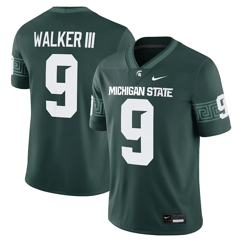 Celebrate a Michigan State Spartans legend with this Kenneth Walker III Alumni Game Jersey from Nike This Kenneth Walker III jersey is crafted with Nike's Dri-FIT technology ensuring you stay dry and comfortable as you cheer on your favorite Spartan The heat-sealed name numbers and team details allow for a lightweight and breathable feel while showcasing your Michigan State pride