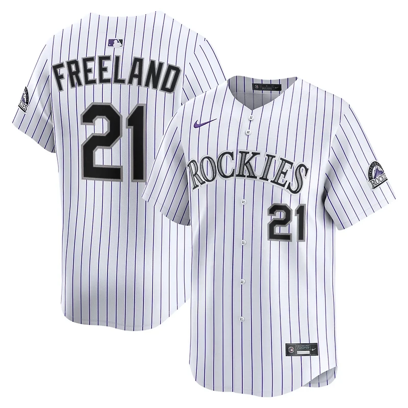 Show your Colorado Rockies pride with this Kyle Freeland Home Limited Player Jersey from Nike and feel like part of the team every time you wear it This jersey is crafted with breathable double-knit mesh fabric and Nike's signature Dri-FIT technology keeping you cool and comfortable as you cheer on the Colorado Rockies The heat-applied twill appliques with faux stitching and embroidered Nike Swoosh add premium authentic touches