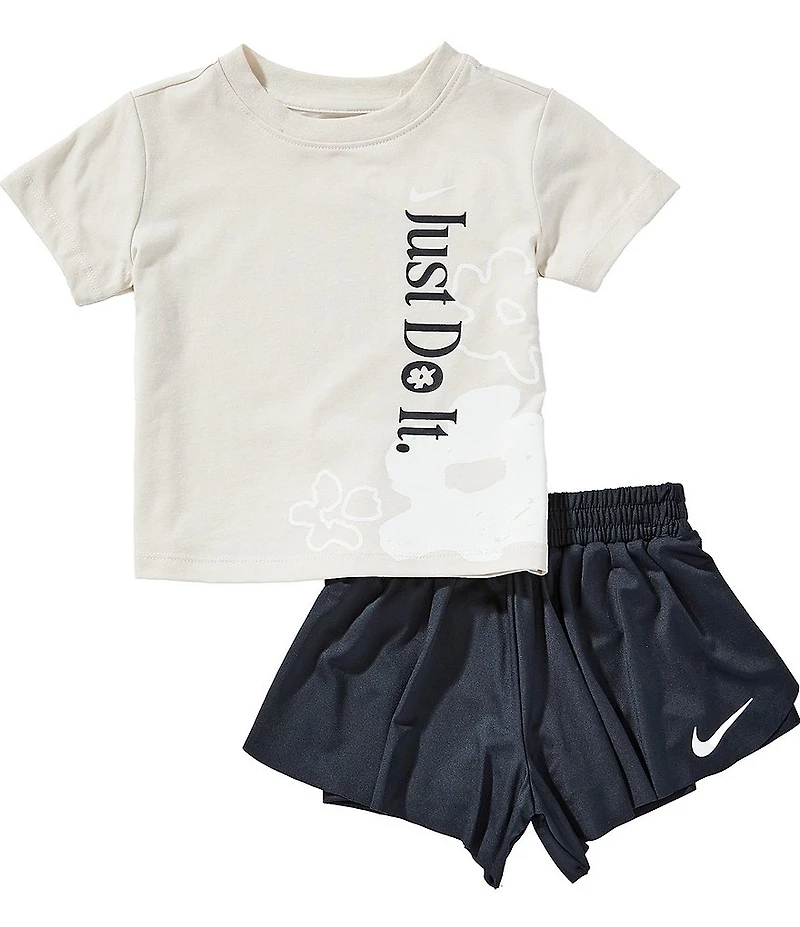 Nike Little Girls Short Sleeve Wild Flowers 'Just Do It' Tee & Shorts 2-Piece Set