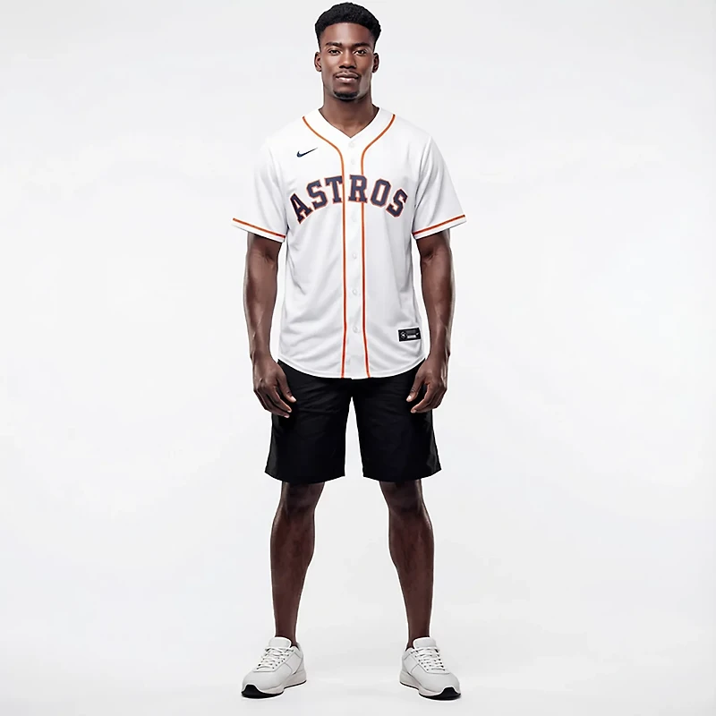 Boast your fan pride wherever you sport the Nike Men's Houston Astros Blank Official Replica Home Jersey. The Astros wordmark and colorway design display your fandom in style. The 100% polyester fabric supplies softness and lightweight, comfortable wear.