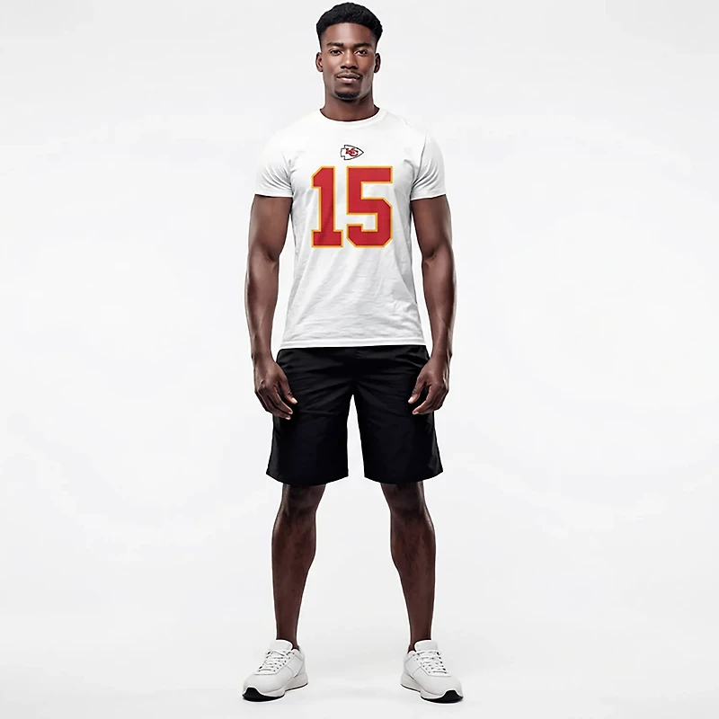 Root for your favorite team when you wear the Nike Men's Kansas City Chiefs Patrick Mahomes Name and Number Short Sleeve T-shirt. It is made of 100% cotton. The mesh details on the numbers offer an authentic jersey look, and its jersey-like design displayed on the back adds to its sporty vibe. The Kansas City Chiefs logo and Patrick Mahomes' number, 15, are printed on the front, showing off your team spirit.