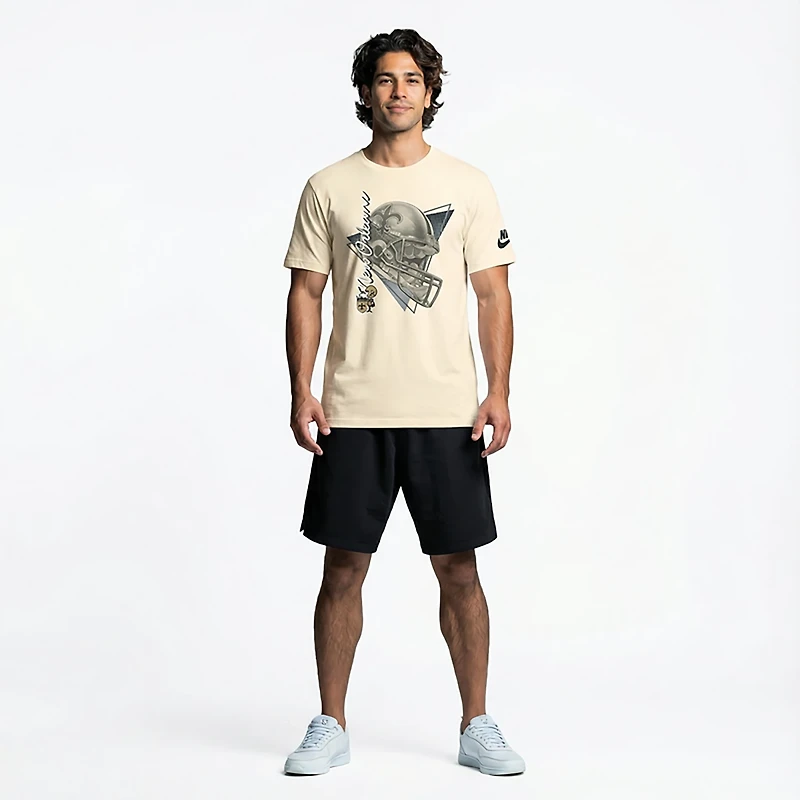 Celebrate each victory in style when you throw on the Nike Men's Saints Rewind Essential T-shirt. This T-shirt provides a team graphic to help get fellow fans excited all season long, and its short sleeves provide a casual style.