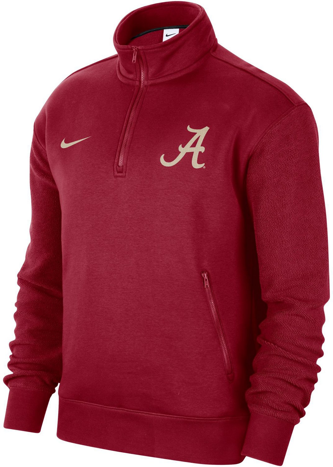 Cheer on the Crimson Tide wearing the Nike Men's University of Alabama 1/2-Zip Pullover. This 1/2-zip is made from 80% cotton and 20% polyester fabric for all-day comfort and has an Alabama team design that shows your team spirit.