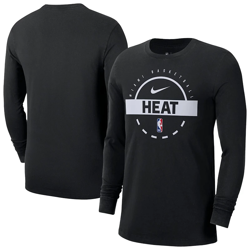 Take your training to the next level while repping your favorite team in this Miami Heat Authentic Long Sleeve Practice T-Shirt from Nike Crafted from soft breathable cotton this long sleeve tee offers all-day comfort whether you're hitting the court or relaxing at home The screen print graphics boldly display your Miami Heat pride making it clear where your allegiance lies
